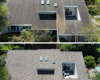 Those black streaks on your roof are algae feeding on asphalt shingle materials, shortening your roof's lifespan and increasing cooling costs. Our specialized soft washing system safely removes algae, moss, and lichen without damaging shingles. We use low-pressure application with professional-grade solutions that kill organic growth at the root and continue working after we leave, ensuring thorough elimination and longer-lasting results.